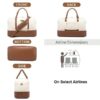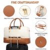 The shoe compartment can comfortably fit 2 pairs of average-sized shoes. The backside has a sleeve to allow you to slide your bag over a rolling suitcase and also has another zip pocket for your important documents or essentials