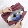 – Large Capacity: You can put your make-up, shampoo, toothbrush, toothpaste and so on, all in it. There are four zippers which provide you four different sections for you, making your travel comfortably to have all your necessities in one bag