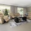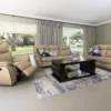 A blend of luxurious comfort and durability for your living space. This suite embodies elegance and functionality with its PU upholstery and exquisite contract piping and stitching, offering a sophisticated touch to your home decor. The 2-seater includes a convenient drop-down console, adding practicality and versatility to your relaxation space. The suite features recliner actions that are guaranteed up to 120kgs, ensuring robust support and comfort for a wide range of users. With a 5-year guarantee on the mechanism and frames, this lounge suite ensures lasting durability and peace of mind. The suite is crafted to withstand daily use while maintaining its superior quality.