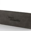 Black high-quality pencil case in synthetic leather with a velvet lining and the words “black is beautiful” on the case, including construction set.