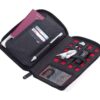 – One mesh pocket and another with clever elastic straps, for smartphone accessories, headphones, pens, charging cables, etc.