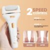 2 Speeds Adjustable The callus remover comes with 2 different quartz sand grinding heads and two working modes – a low speed of 1700x/min and a high speed of 2000x/min – that are suitable for tackling various types of dead skin and calluses. Its speed can be easily controlled based on your preferences, making it more convenient and safer to use.