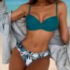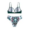 The Tropez Bikini Set offers a Multicolour Tropical Print Pattern on the Bottom with a Plain Twist Top with underwire.