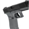 The Gen5-typical features include front serrations, a weaver rail and a trigger safety. The heavy metal slide and powerful blowback provide an authentic shooting experience. Every shot fired from the 18-round all-in-one magazine produces a convincing recoil. The precise dimensions and realistic weight ensure perfect handling and compatibility with standard accessories like holsters. There is also an additional sliding safety.