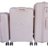 luggage set, 3-piece luggage, light pink luggage, spinner wheels, TSA lock, polypropylene luggage, chevron luggage, hard shell luggage, carry-on luggage, travel suitcase, medium luggage, large luggage, rolling luggage, secure suitcase, combination lock luggage, telescoping handle, durable luggage, stylish luggage, luggage for travel, reinforced corners, zippered compartments, organized packing, travel set, airport luggage, spinner suitcase