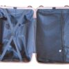 Fully lined interior: Blue lining with zippered compartments and straps for organized packing