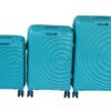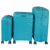 3-piece luggage set, turquoise luggage, hard shell suitcase, spinner wheels, telescoping handle, polypropylene suitcase, durable luggage, travel suitcase set, ribbed design luggage, bright color luggage, carry-on luggage, checked luggage, lightweight suitcase, dual spinner wheels, reinforced corners suitcase, travel essentials, luggage with lock, zippered compartments, smooth rolling luggage, travel organizer, suitcase with straps, multi-size luggage, sturdy zippers, luggage set for travel