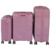 Pink luggage set, 3-piece trolley luggage, hard shell luggage, polypropylene suitcase, spinner luggage, TSA-approved luggage, telescoping handle luggage, travel suitcase set, durable luggage, luggage with wheels, zipper closure luggage, pink travel luggage, nested suitcase set, ripple texture suitcase, carry-on luggage, checked luggage, lightweight luggage set, sturdy travel luggage, 4-wheel spinner luggage, large suitcase, medium suitcase, small suitcase, pink trolley set, secure luggage set.