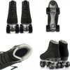 Classic Double-row Design Our classic double-row roller derby skates are safer and more stable than straight-line roller skates, ideal for beginners and women or men who want to easily learn roller skating. Perfect for beginners and women who want to learn roller skating easily, the support column at the front for better control and fast braking, This structure ensures that the support will not be damaged.