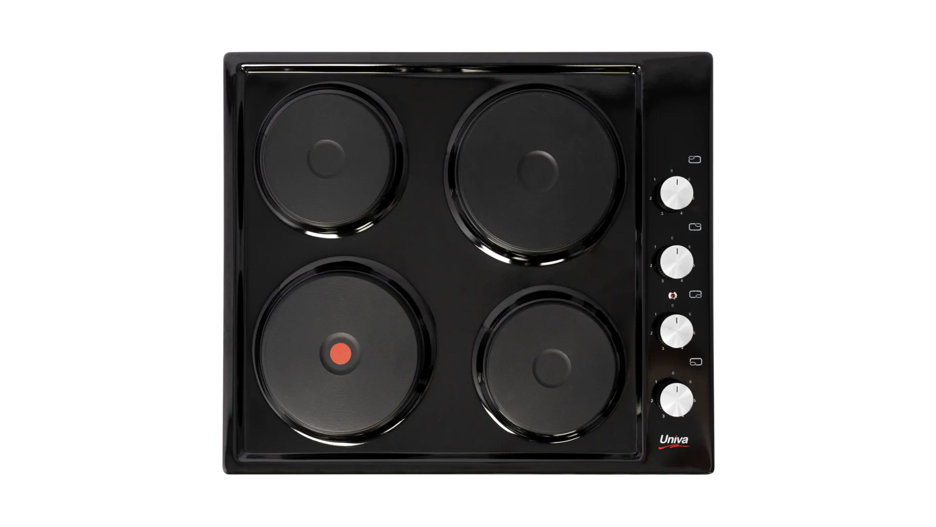 The Univa 4 Plate Solid Hob Black U156B is a contemporary and practical addition to your kitchen, designed to simplify your cooking routines and elevate your culinary experiences. With its four solid plates crafted from durable black enamel, this electric cooktop combines both style and robustness. The black enamel finish not only adds a touch of modern elegance to your kitchen but also ensures easy cleaning and maintenance, making it a user-friendly choice.