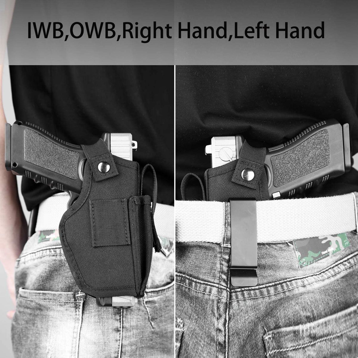 This handguns holster is designed to be worn inside or outside the waistband for concealed carry. The retention strap is easy to open so you can draw the firearm quickly and effectively, convenient for self-defense.
