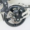 – back disk brakes and solid rubber and nylon tire and rim with a (200mm diameter rim) and old school brake on the back rim