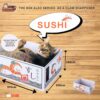 There are multiple designs to choose from, such as: salmon sushi, home mover, mango, orange, bus, or soy sauce.