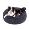 UrbanPets – Premium Fluffy Dense Plush Cat and Dog Round Cuddle Calming Bed – Dark Grey – XL