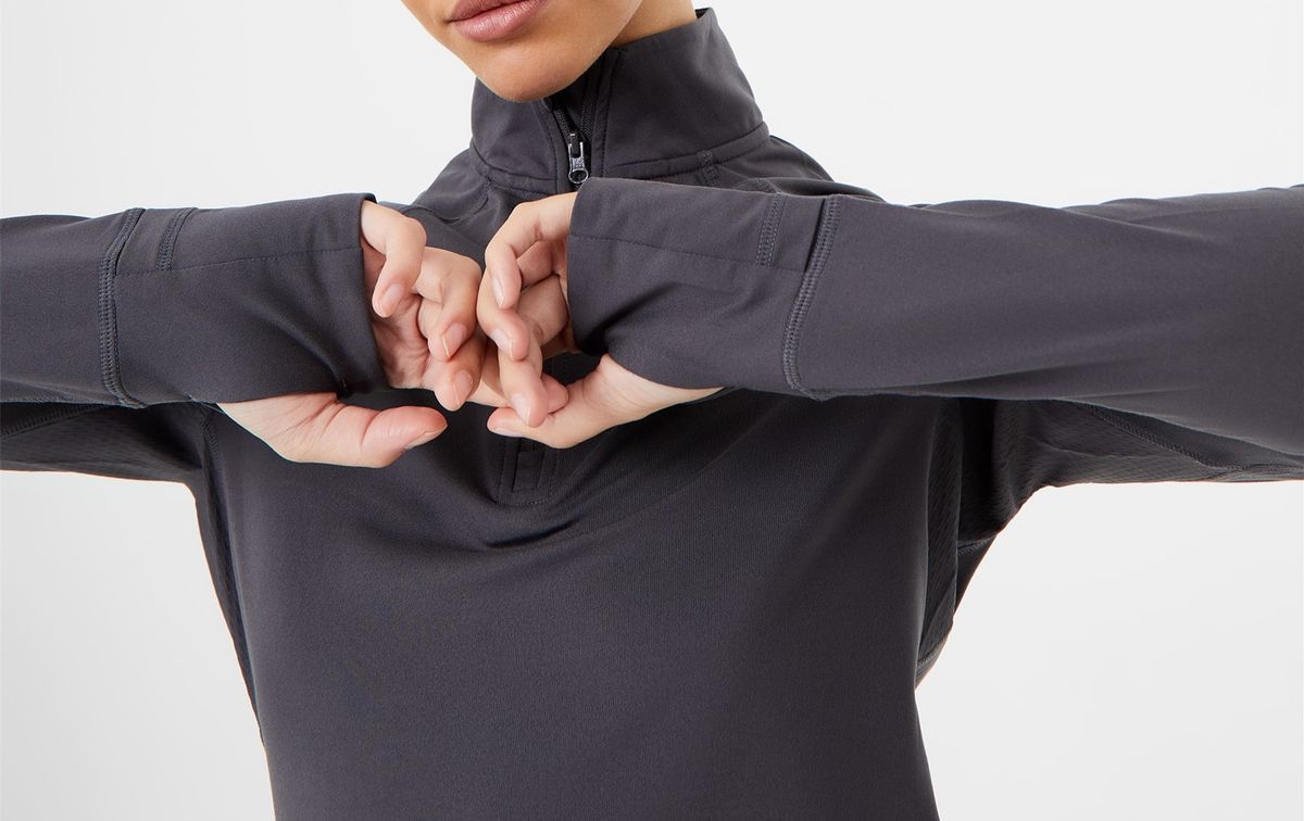 Take your workout to the next level with the usa Pro half zip funnel neck jacket. The slimline silhouette accentuates your form and features black seamed detailing that is figure-flattering and stylish. The breathable fabric is comfortable to wear while sweat wicking technology enhances your workout routine to help keep skin dry while you`re working up a sweat.
