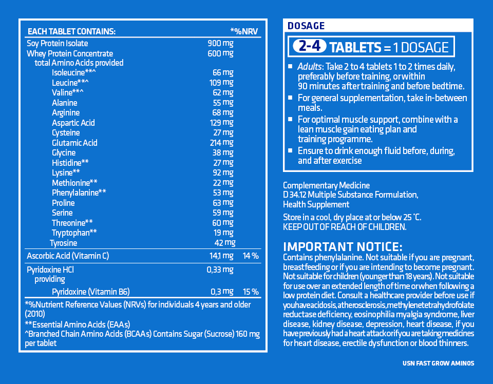FAST GROW AMINOS is a powerful source of amino acids which are the building blocks of proteins to build muscle, repair tissue and promote recovery. FAST GROW AMINOS is formulated to enhance performance and endurance and can be used daily.