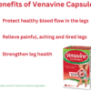 Venavine capsules is indicated as a supportive supplement for people suffering from poor leg vein health. The active ingredient can assist the body to alleviate symptoms such as pain and swelling from varicose veins, spider veins, reduced leg vein circulation, as well as tired and heavy legs and night time muscle cramps.