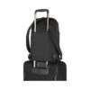 The Victoria Business Backpack has organisational panels, Phone pocket, large pocket for pens or lip glloss,a pen compartment and zippered valuables pocket for jewellery or sunglasses.10″ Tablet Pocket,16″ Laptop compartment, trolley pass-thru to slide over handles of wheeled luggage.