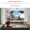 Up-to-300″””” screen size with 4,000 ANSI Lumens to maximize fun at home