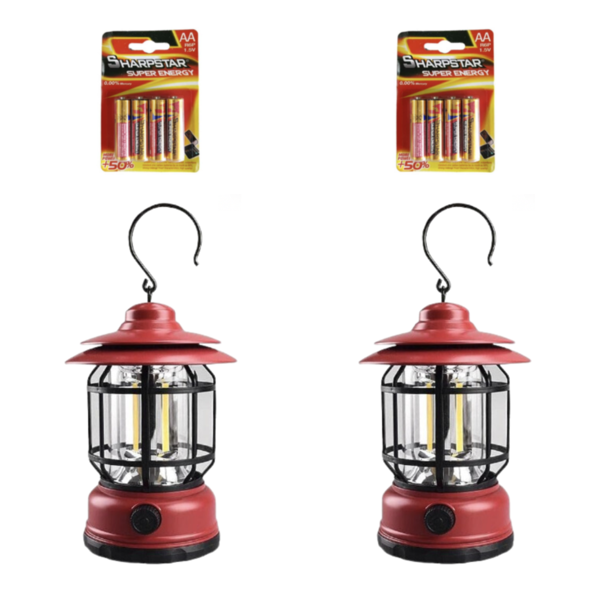 Vintage Battery Operated Camping Lantern with 8 x AA Batteries – 2 Pack – Red