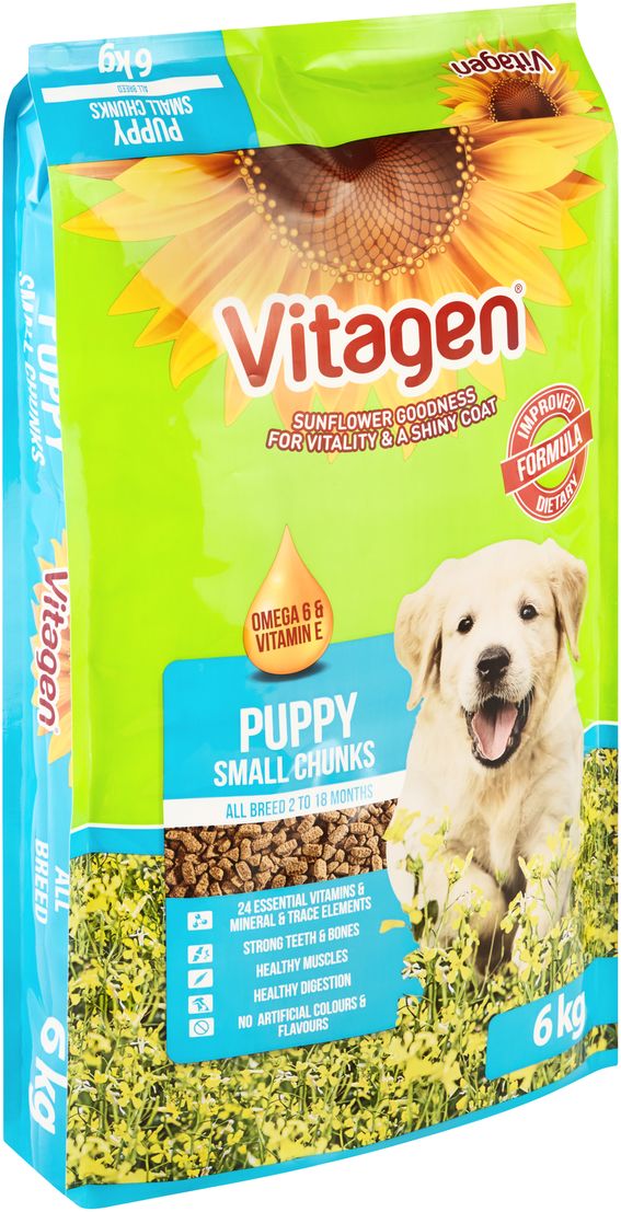 Puppy owners have the important task of ensuring that their new puppy gets the vital nutrition needed for their growing bodies. Optimal mental and physical development is only possible with food thats specifically designed to support the growth rate of young dogs. Vitagen puppy food contains ingredients that are vital to healthy metabolisms, strong bones and muscle development. They also feature a higher calorie count compared to Vitagen adult dog food, giving puppies the energy needed for learning and exploring.