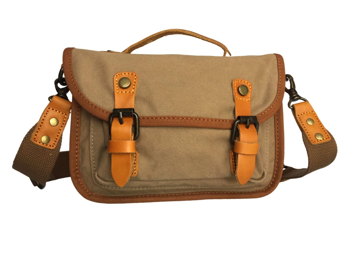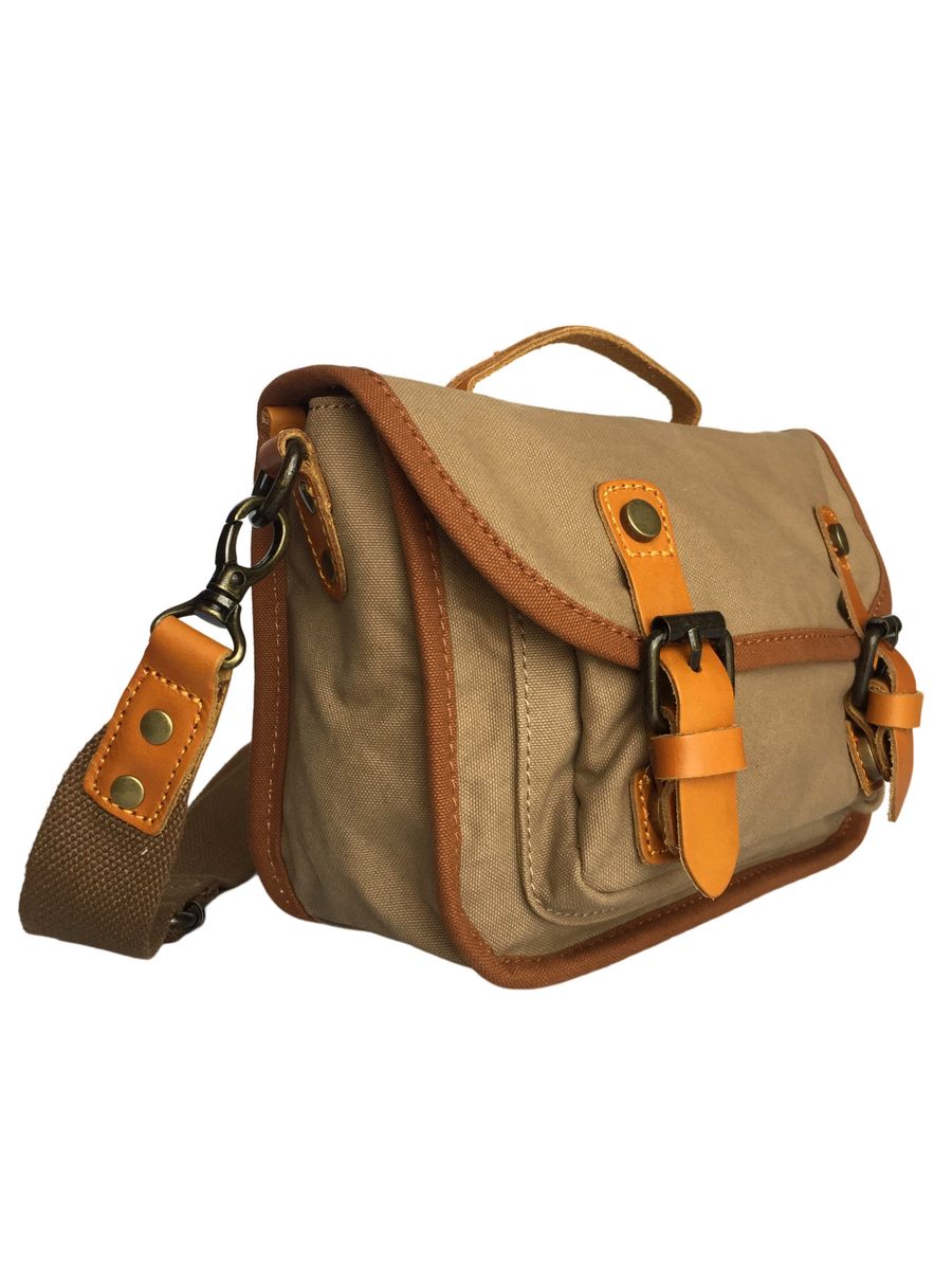 Vivace- 100% Leather and Canvas CrossBody Bag – Kahki