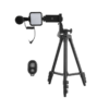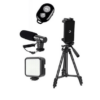 The Vlogging Kit enhances the video effect through better sound and lighting indoors or outdoors. It has a universal microphone that can be used on any smartphone or camera. It has 49 ultra-bright LEDs that can be used as a tripod. The tripod handle mounts the video on the tripod, and uses a smart phone adapter with built-in boots, which can not only mount a mobile phone, but also a light or microphone.