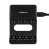 ⢠USB Powered battery charger for rechargeable AA or AAA batteries
