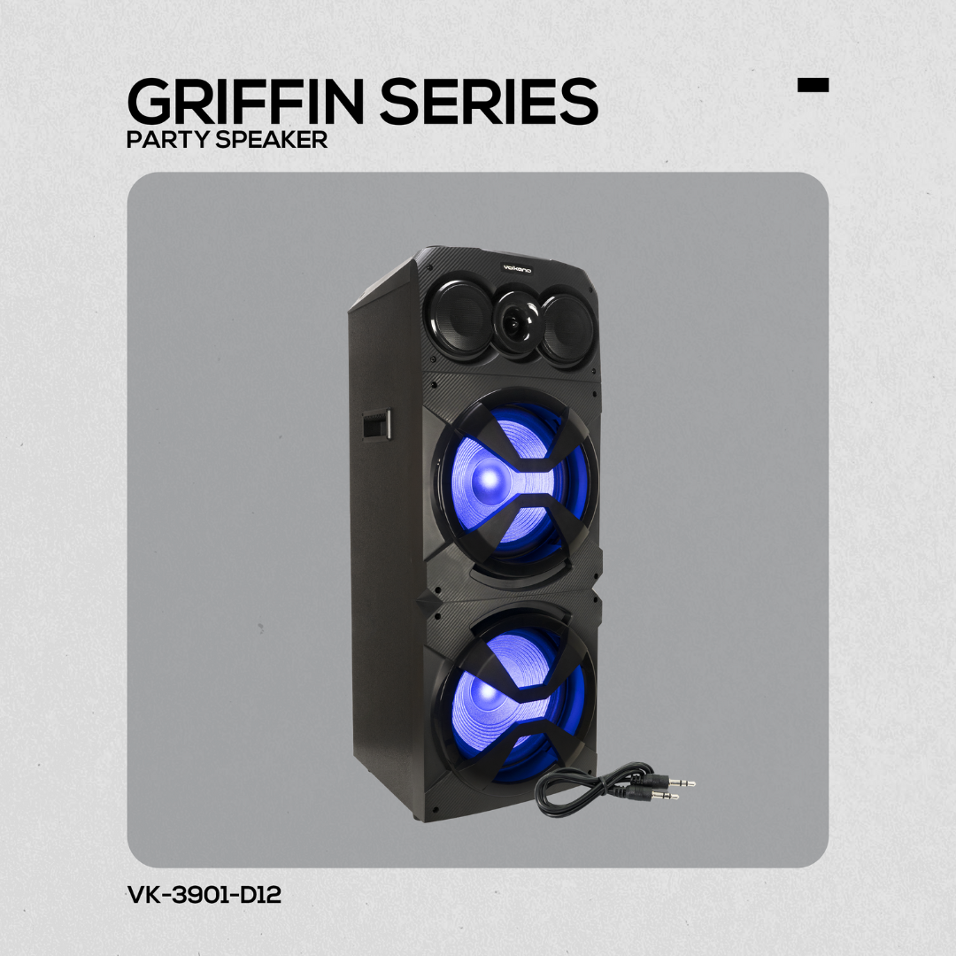 Get ready to elevate your parties with the Volkano Griffin Series Dual 12″ Party Speaker – Black. With a powerful 130W RMS output, this speaker delivers amazing sound quality that will keep the party going all night long.