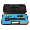 This is a flashlight for professionals: tradesmen, hunters, police officers or security experts. With its 42-mm lens the XL1000 emits a powerful 1070-lumen beam for long-distance illumination. In spite of its power, this flashlight is only 32 cm long and weighs just over half a kilogram, making it easy to handle. It comes with a ring for attachment on one’s belt.