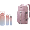 Waterproof Duffle Backpack Gym Travel Bag with 3 Piece Bottle – Dusty Pink