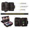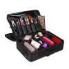 – 3 layer, include adjustable dividers compartment, brush holder with plastic cover, mesh compartment, zipper pocket, hidden pocket.