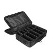 – 3 layer, include adjustable dividers compartment, brush holder with plastic cover, mesh compartment, zipper pocket, hidden pocket.