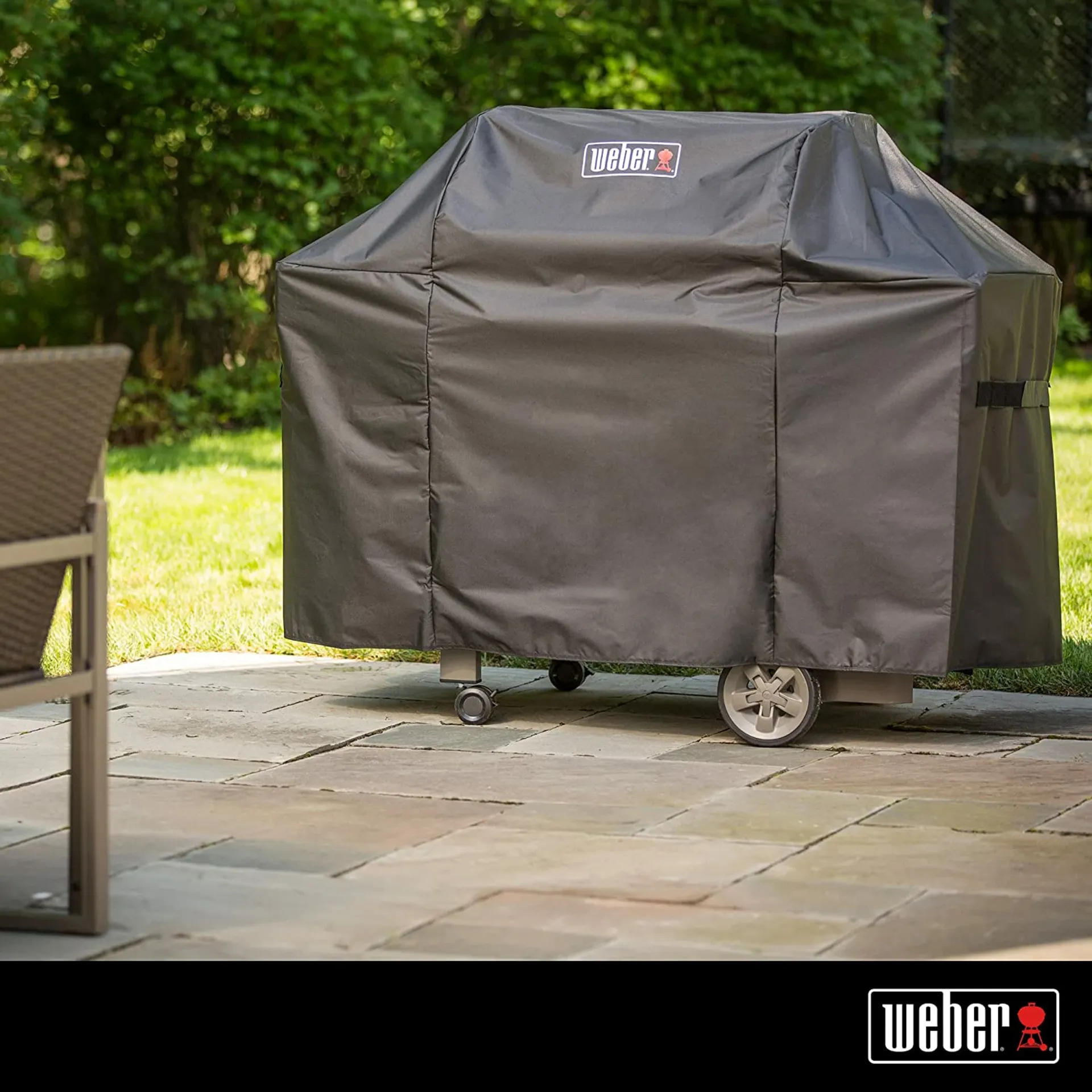 Designed to withstand any weather condition. The durable premium grill cover makes it easy to pull on and off your grill. Its fastening straps keep it from blowing into your neighbor’s yard. Fits the Weber genesis ll 3 burner grill.