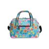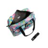 This spacious weekender bag has two large outside compartments that have double zips on them. The backside also has a zip compartment. The inside is fully lined with a small zip pocket. The long cross body bag strap is adjustable and removable and there are also handle straps. This bag is made from durable and easy-to-clean PU fabric.