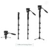 With a 4-section adjustable design, the monopod has quick release leg locks to adjust it’s height from 57cm to 148cm freely.The pan head has a rocker arm to adjust the shooting angle. Tilting angle: +90°~-70°; Panning angle: 360°; it also supports 90° vertical shooting. With considerable waist strap design, it is convenient to carry. A comfortable spong on it’s leg makes it warm in winter, and anti-slip in summer. Foldable metal unipod holder, durable and firm to use.
