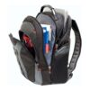 17″ Laptop Computer Back Pack with a separate pouch for a 12″ tablet. Triple protected Padded compartment. Case base stabilizing platform keeps the bag standing upright. Essentials organizer for power cords, chargers and business cards. Comfort fit shock- absorbing shoulder straps. Pass-thru trolley sleeve slides over luggage handle. Mesh side pockets. Air Flow back padding keeps wearer cool. Reinforced top grab handle with cable for easy carrying