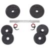 This 10kg barbell kit includes one 2kg bar, four 1kg plates, and two 2kg plates for home workouts. Perfect for beginning weight training.