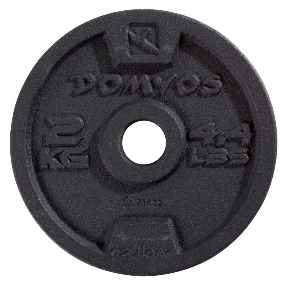 – 2 x 2kg plates, diameter: 28mm (175mm diameter, 18mm thickness)