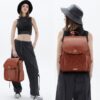 Women Casual Faux Leather Rucksack Bag Backpack – Brown
