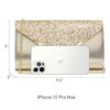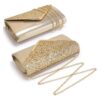 Features: Glitters in varied sizes on flap; Polished metal hardware; This envelope-style evening clutch bag with shiny glitters that will make you glowing during special occasions.