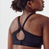 The straps of the Classic running bra may be worn vertically, like a conventional bra. They may also be attached in the middle of the back, using a hook which connects the two rings. This frees up the shoulders and gives greater freedom of movement. The crossed straps also ensure better bust support.