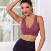 Strappy Back Design This crisscross sports bra features a strappy back that adds glamour while the double strap design disperses pressure on the shoulders and evenly covers the back to keep the body relaxed.