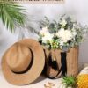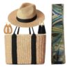 This summer beach straw hat, women straw beach bag and earrings set is designed to create a different summer mood for you, ideal for lounging by the pool or spending a day in the city.