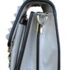 Elegant Silver/White Women’s Structured Handbag with Gold-Toned Hardware, Removable Strap, and Embroidered Details