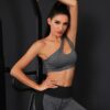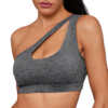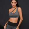 – One Shoulder Design Sports Bra : Sexy Hollow Out Yoga Bra Crop Top. The strap is on the LEFT shoulder. Super cute one shoulder sports bra. Features removable pads, elastic fabric and unique design to provide medium support and comfort while allowing maximum body movement.