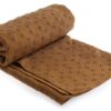 It has tiny flower-shaped nubs that provide grip and reduce slipping. It is beautifully packed in a satin drawstring pouch bag to stylishly carry your yoga towel and other yoga goodies around.