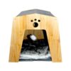 Sturdily Made & All-Season Use: Made of solid wood, the wood cat cave house is strong, durable and more stable than soft ones. It has a removable soft mat with washable cover. Easy and convenient for you to clean. Double-sided bed cushion will keep your pet warm in winter and cool in summer.