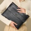 Woodstock Leather – 14″ Genuine Leather Nova Laptop Sleeve For Macbook – Black