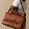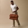 Elevate your accessory game with Woodstock Leather’s tan leather bag, where style meets practicality.